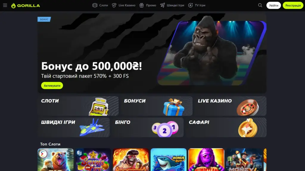 🎮 Які ігри доступні в Gorilla казино: автомати, слоти, столи
