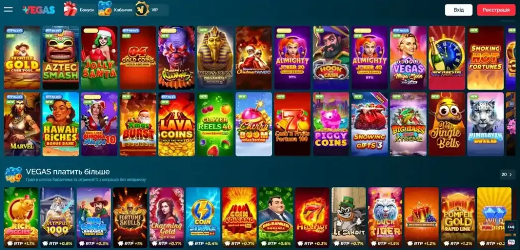 Асортимент в казино Vegas приємно вражає. Для українських гравців доступні сотні найкращих слотів, live-ігри, рулетки, картярські столи, краш-ігри й інші розваги. Присутні як класичні автомати, так і сучасні ігрові рішення з великою волатильністю. Усі ігри сертифіковані, із перевіреним RTP.